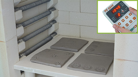 Place the tiles in the kiln, ensuring they are not touching each other, and there is sufficient room between each of them to allow the air to circulate. When you have packed your kiln, it’s time to set the controller for a ‘bisque’ or ‘biscuit’ firing. The settings we have listed are for a 3-stage kiln controller. If you have a 2-stage kiln controller, give us a call and we can advise on which settings to use.