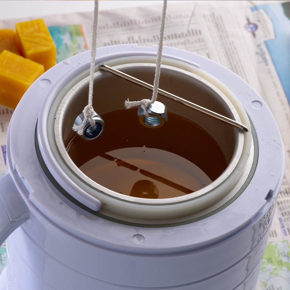 Once your wax is ready, you’ll want to make some candles! In this case, this guide is illustrating how to make a pillar candle.