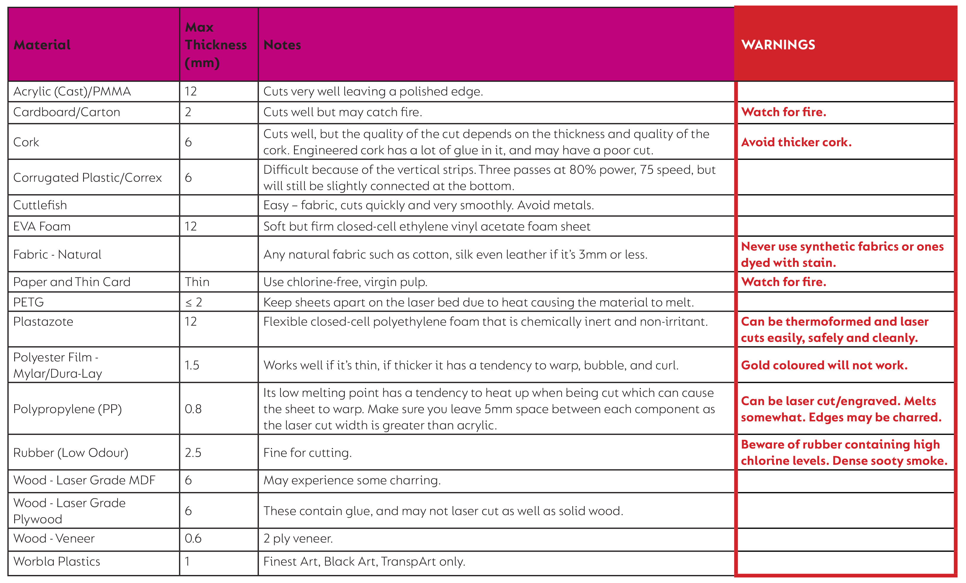 If you’re looking for materials suitable for CO₂ laser cutting or engraving, we’ve put together a helpful list to get you started.