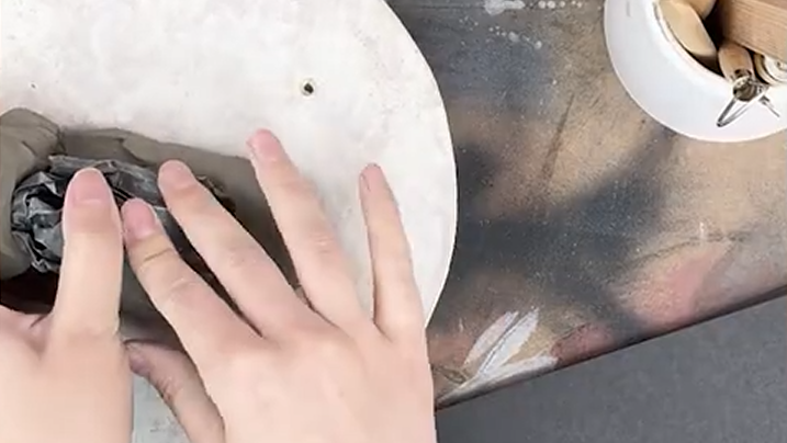 Start by thoroughly wedging the clay using a ram’s horn motion. Twist and fold the clay repeatedly, pressing it together to remove trapped air and evenly distribute moisture. This process warms the clay, improves its elasticity, and prevents cracking or explosions in the kiln later on.