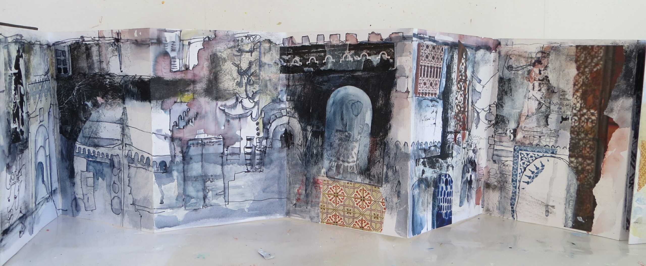 Karen Stamper, concertina sketchbook example, karenstampercollage.com